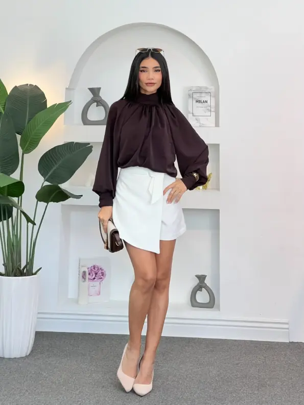 High-Neck Fluid Blouse 16$