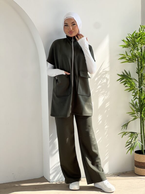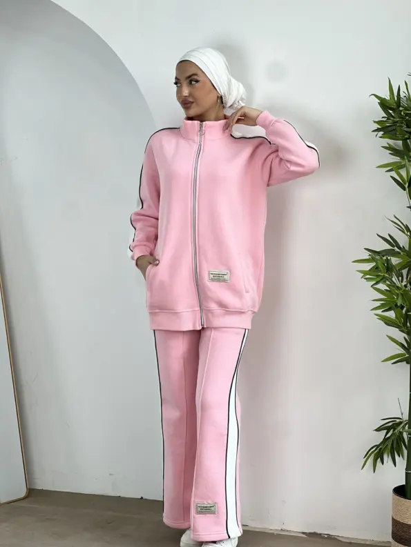 Casual Long Sleeve Zip-Up Jacket And Straight Leg Pants 27$