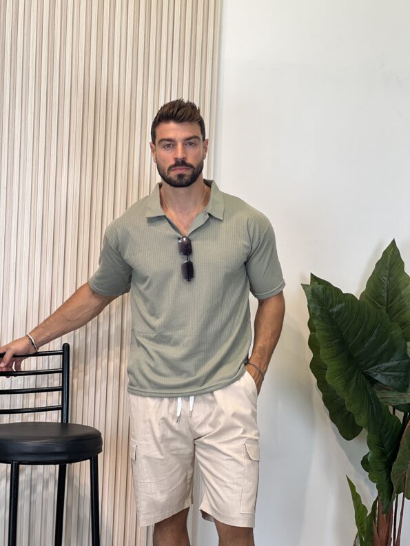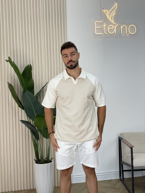 Men Contrast Trim Polo Shirt & Shorts 19$