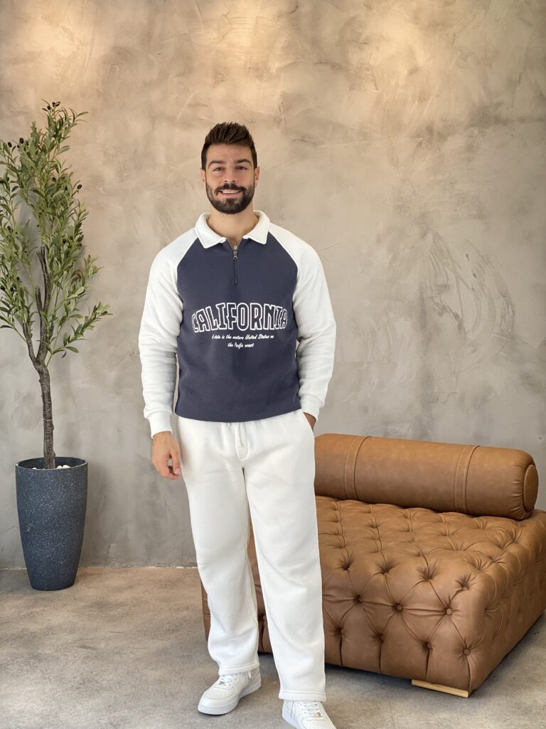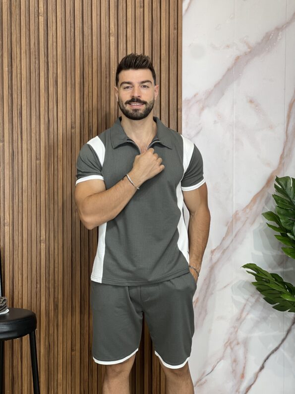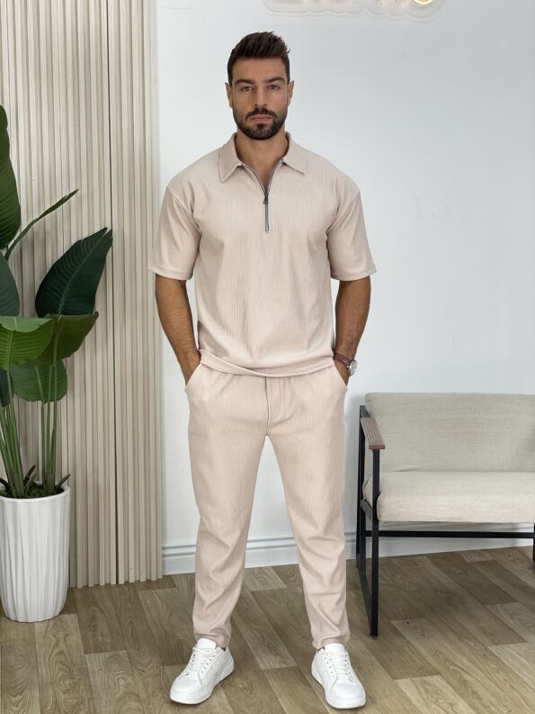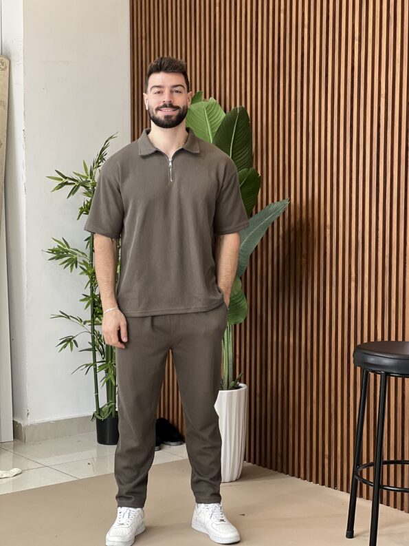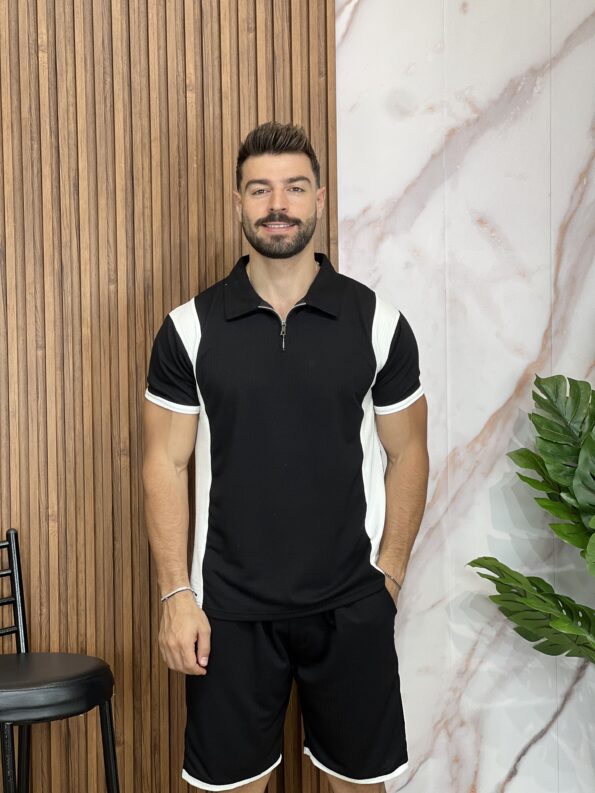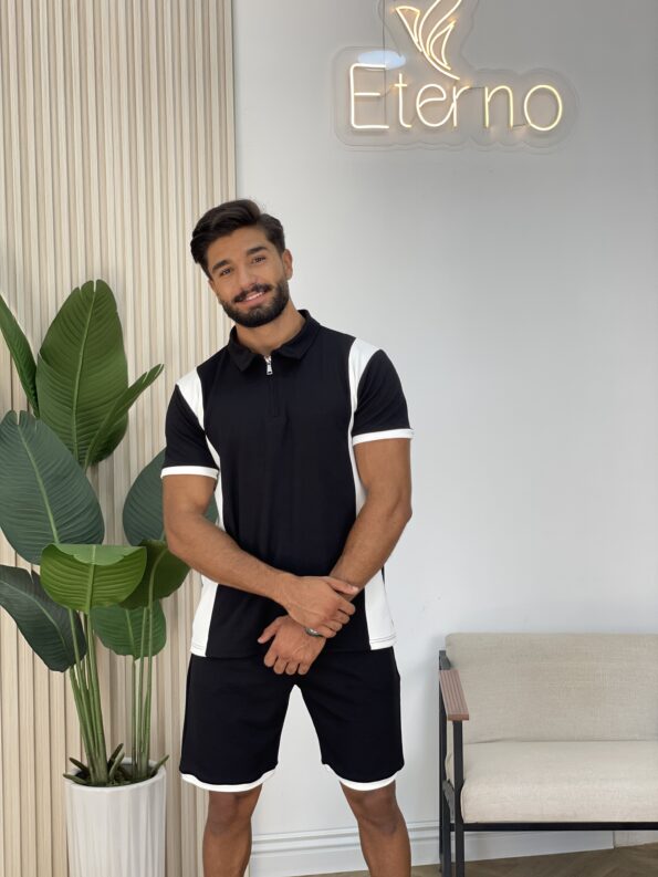 Men Two-Tone Zipper Polo and jogger Set 19$