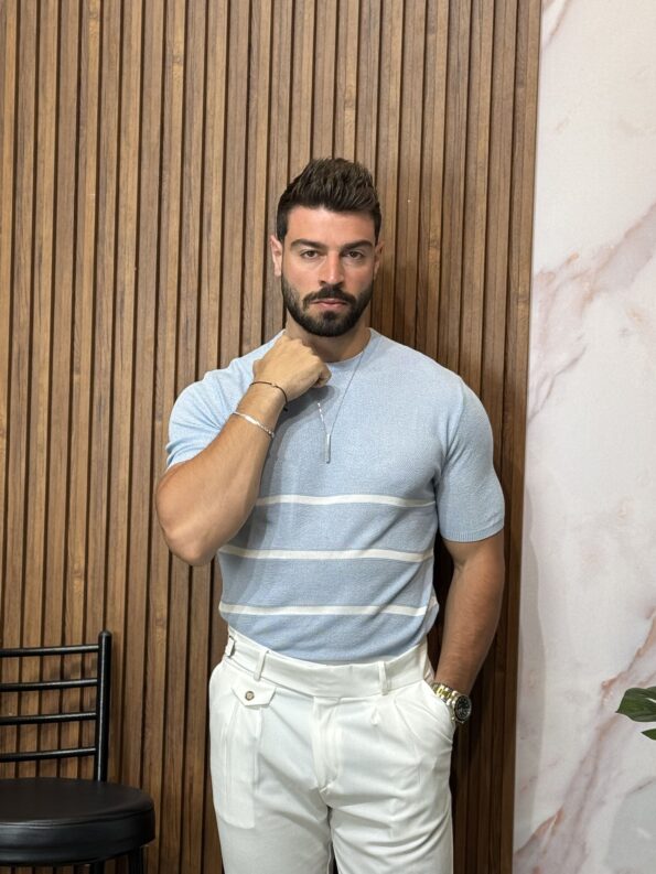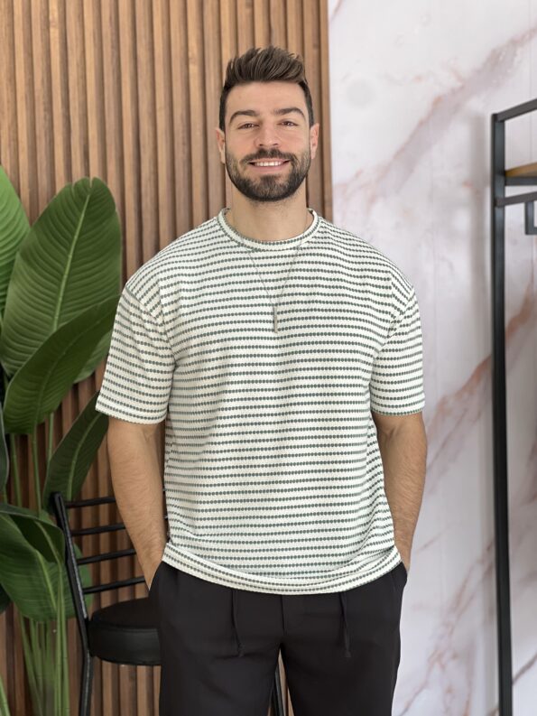 Men’s Casual Crew Neck Short Sleeve Contrast Striped T-Shirt 10$