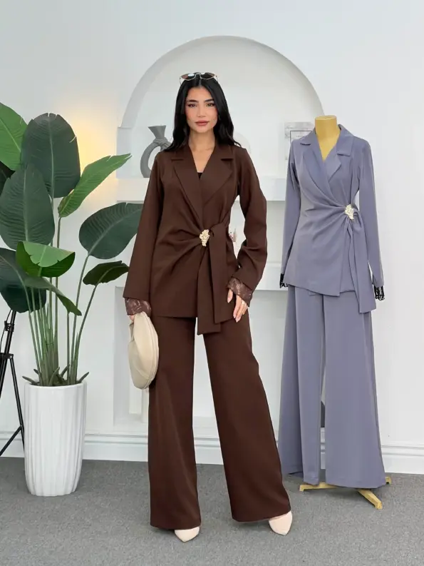 Women’s Casual Pocket Long Sleeve Suit Set 29$