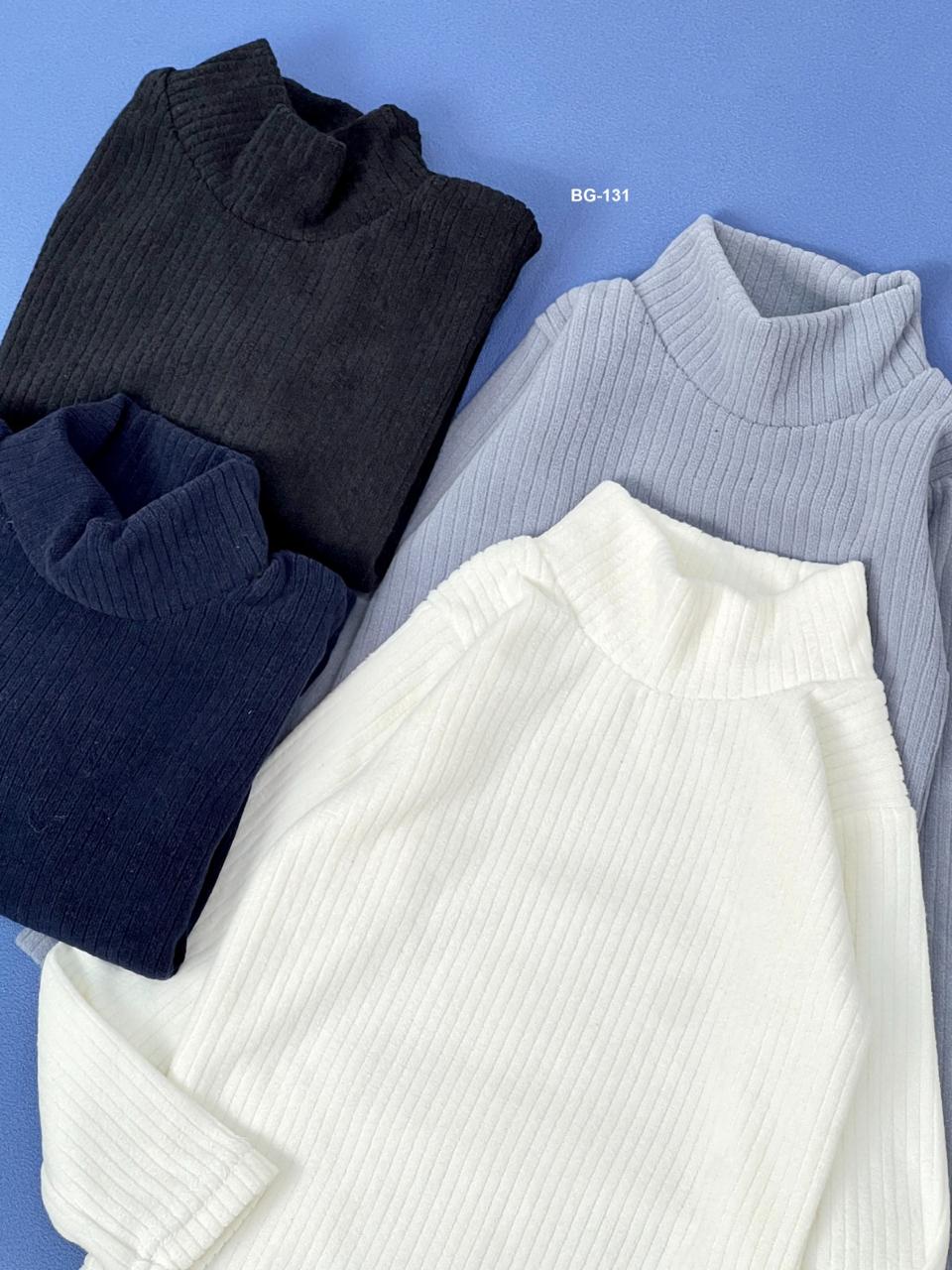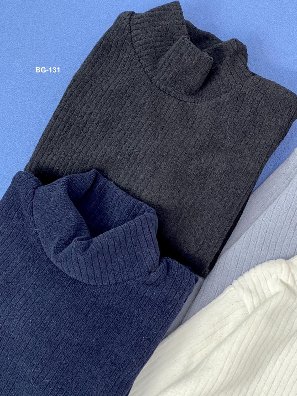 Solid Color Turtleneck Ribbed Fabric Long Sleeve T-Shirt BG-131
