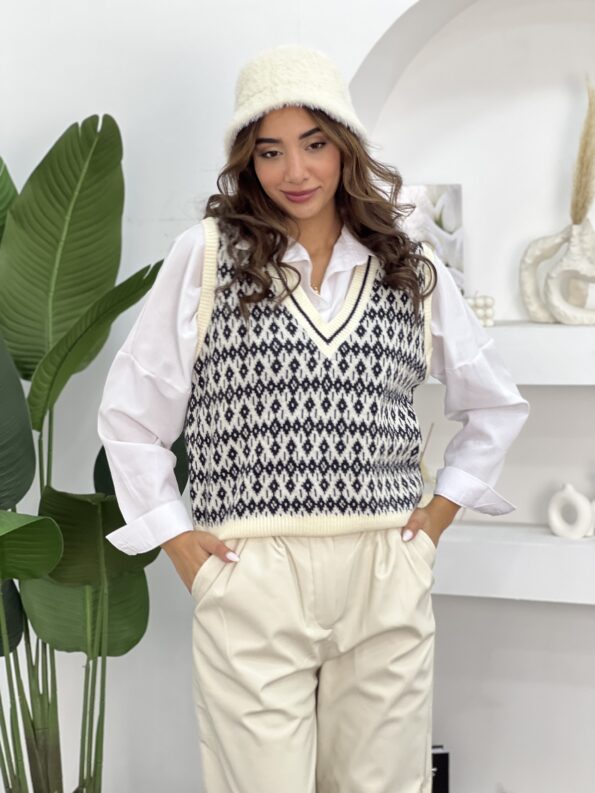 Women V Neck Geometric Sweater Vest 12$