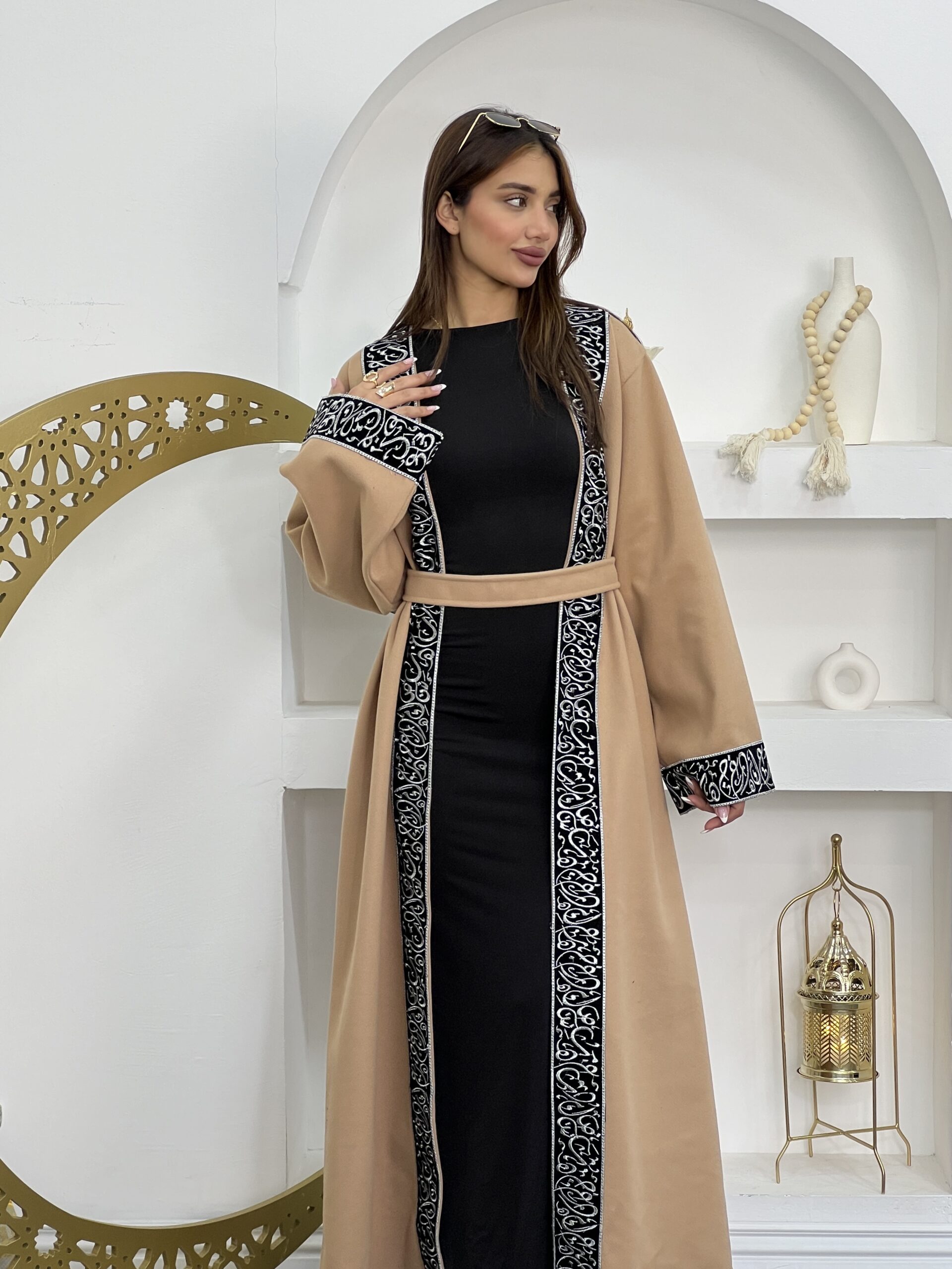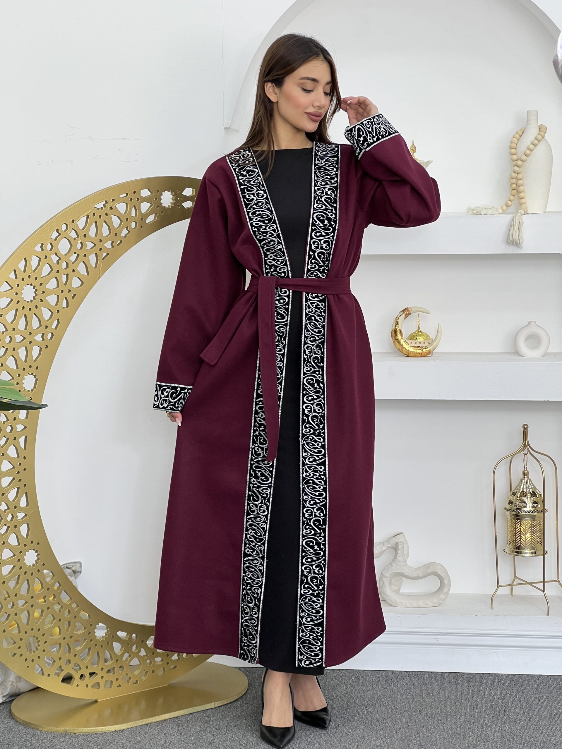 Long Sleeve Lace Trim Abaya Robe 29$